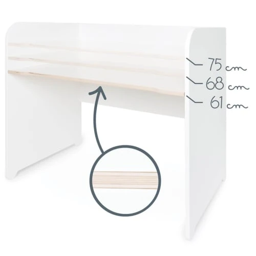 Lorsque votre enfant grandit, le bureau grandit avec lui ! Il peut donc l’accompagner tout au long de sa croissance : des premiers coloriages aux premiers devoirs.
